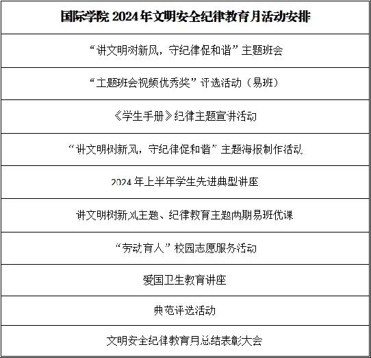 结合我院实际情况与学院特色,现定于2024年3月11日至2024年4月15日开展3044永利集团登录文明安全纪律教育月系列活动。