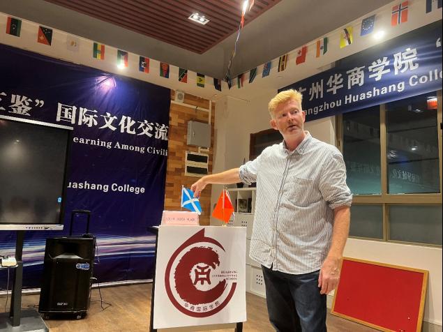 本次分享会邀请了来自英国苏格兰的外教Colin Derek Black担任主讲嘉宾, 他从苏格兰与英国的关系、苏格兰历史上的著名人物、苏格兰的人文风俗、苏格兰特色美食等角度为现场师生带来了一场沉浸式的苏格兰文化体验。