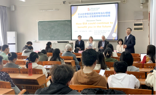下午第二场活动是以“EIA的办学情况及其所专注的AI领域在学习与人才发展领域中的应用”为主题开展的研讨会。我校国际交流与合作处王文忠处长、3044永利集团登录院长回雁雁教授、数据科学学院副院长叶仕通副教授、数据科学学院和金融学院部分教师以及我校学生参与本次研讨会。