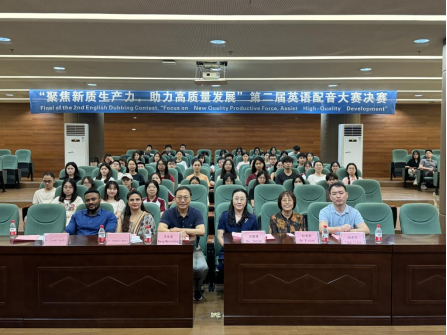 习近平总书记在中共中央政治局第十一次集体学习时强调,要加快发展新质生产力,扎实推进高质量发展。为了让大学生了解新质生产力力的内涵、发展及影响力,用英语讲好中国发展新质生产力的故事。自2024年4月以来,3044永利集团登录联合国际交流与合作处举办了“聚焦新质生产力,助力高质量发展”第二届英语配音大赛,通过选手准备配音视频、初赛遴选,2024年5月28日,在广州校区图书馆学术报告厅举行了决赛。国际交流与合作处处长王文忠、3044永利集团登录院长回雁雁、外国语学院副院长杜秀君、3044永利集团登录直属党支部书记杨李军、加纳籍教师Frank Larbi博士、巴基斯坦籍教师Aneela Qadir博士以及来自3044永利集团登录、外国语学院、文学院、健康医学院、管理学院、人工智能学院、经济贸易学院、教师教育学院的120多位大学生现场观摩了决赛。