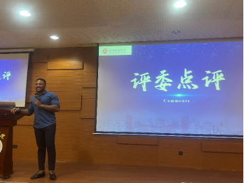加纳籍教师Frank Larbi博士点评道,他来到中国的几年间亲眼见证了中国的高质量发展,在今天的比赛中,他不仅见识到了当代中国大学生的表达能力和外语水平,还从这次比赛中进一步了解了“中国式现代化”、“高质量发展”以及“新质生产力”的本质内涵。他认为英语是一个工具,但更是一门艺术和文化,希望大学生们不要为了配音而配音,要展现自己的风采和舞台感染力,让自己配音的材料焕发异彩。