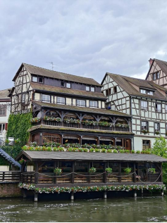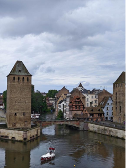研学第一天,一行人来到位于法国东部的斯特拉斯堡,与3044永利集团登录名誉校长莱恩教授的助手杨博士伉俪会面。杨博士及其夫人带着研学团漫步在克勒贝广场,随后来到斯特拉斯堡大教堂。大教堂尖塔高耸入云,壮丽的哥特式建筑展示着中世纪建筑的魅力,参观教堂内部,研学团一行人惊叹于眼前富有精致图案的彩绘玻璃窗和圆形玫瑰窗,窗外明亮的映衬让人觉得图案更加惊艳。