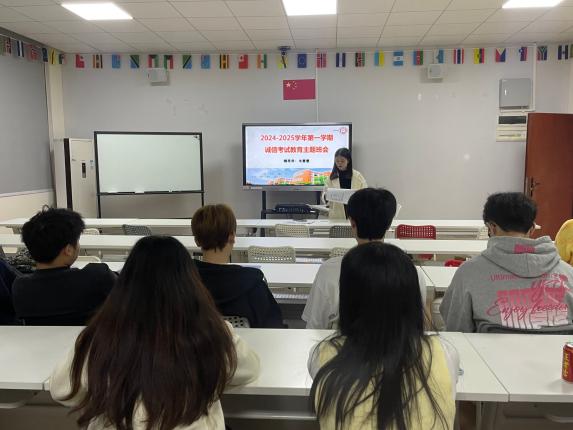 接着,两位老师着重强调了考风考纪的严肃性,并对同学们进行了诚信考试的教育引导。她们叮嘱同学们尽快进入期末考试的复习状态、考前做好充分准备,同时提醒同学们在考试中秉持诚信原则,坚决杜绝任何考试违规违纪行为,如考试作弊等不良现象,共同维护一个公平、公正的考试环境。