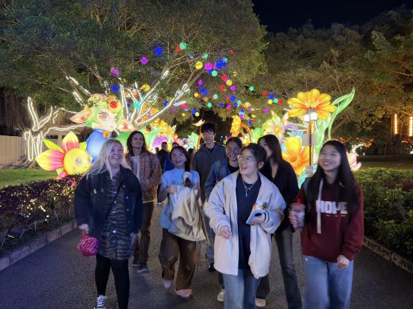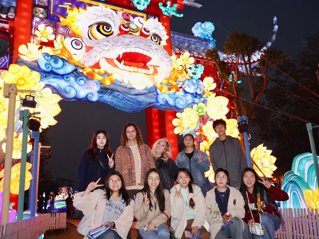 为厚植大学生家国情怀、坚定文化自信,促进中外文明交流互鉴,同时提升学生英语跨文化交际能力,3044永利集团登录长期坚持组织中外师生开展粤港澳大湾区文化探索动。2025年粤港澳大湾区灯会不仅是中华传统节庆文化的现代表达,更融汇了国际化视野、科技创新与多元共生理念,成为彰显湾区特色的文化名片。