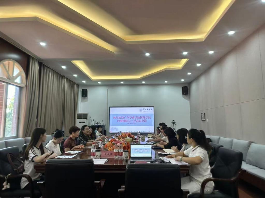 广州商学院郭航校长一行热情接待了来访,在带领参观了广州商学院的校园设施后,双方就座洽谈。