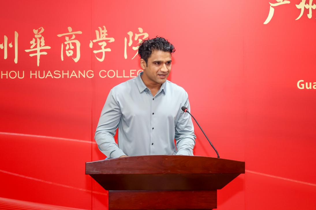 巴基斯坦籍教师代表Aneela Qadir博士在发言中,深情回顾了与华商学院共同成长的四载温暖时光。她动情地表示,华商于她而言不仅是工作单位,更是精神家园。作为教授来华留学生《会计学原理》的教师,她期待来华留学生的课堂能成为知识传播、文化交流与心灵沟通的桥梁。她寄语新生们:永葆求知之心,搭建沟通之桥,锤炼坚韧之志。
