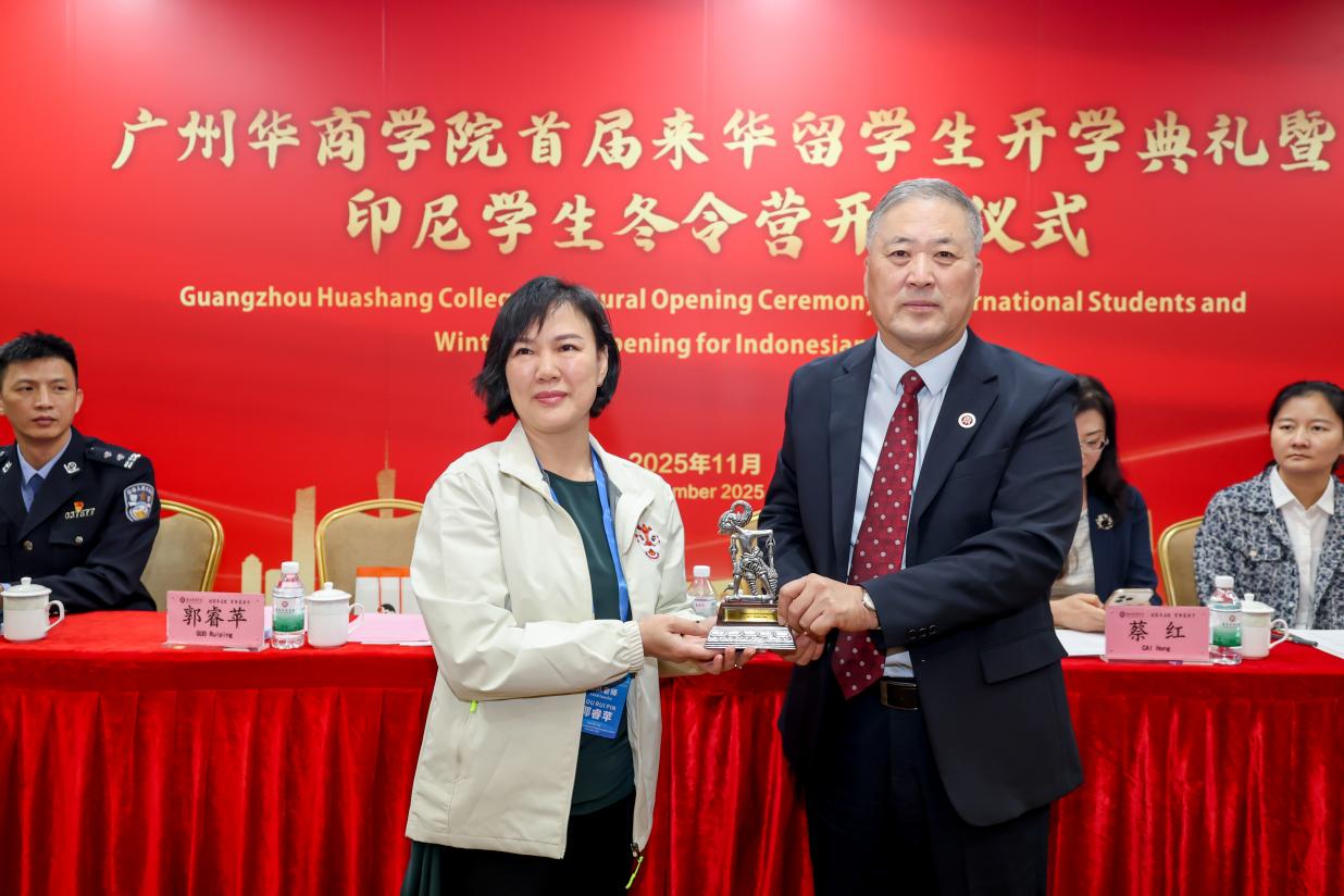 广东省高等教育学会外国留学生工作委员会蔡红理事长在致辞中表示,作为广东省高等教育学会下属的来华留学教育管理服务机构,委员会致力于为相关领域从业人员搭建学术交流、业务培训与国际合作的平台,促进来华留学生加强校际交流、深入体验中华文化,共同助力“留学广东”品牌建设。她希望来华留学生能够在此快乐学习、健康成长、广结良友,既收获知识,也领略文化魅力,把广东视为第二故乡;同时也期待印尼师生通过此行深切感受广东的创新活力与开放包容,未来选择来粤留学,成为优秀的来华留学生。
