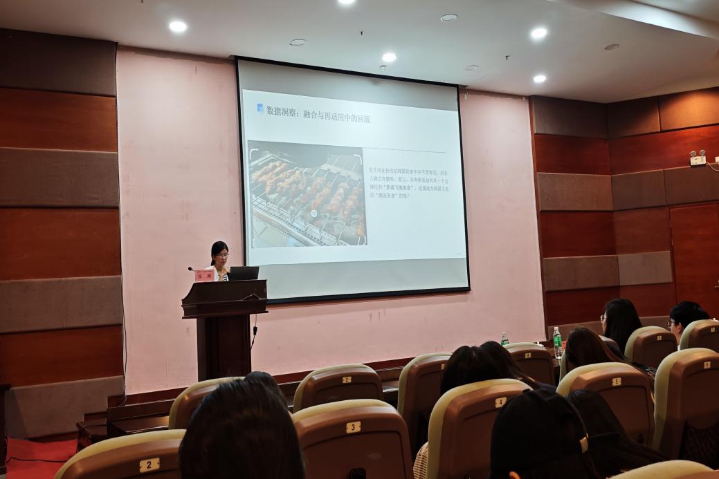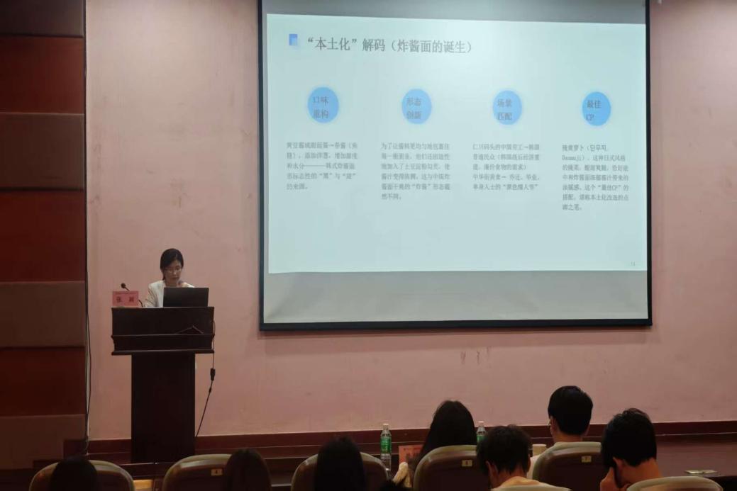 张颖博士以“海外中餐为何既熟悉又陌生?”为题引出思考,通过展示韩国짜장면(炸酱面)、양꼬치(羊肉串)和마라탕(麻辣烫)的图片,引导同学们观察中餐在海外发生的形态与口味变化,并指出这种“变异”背后是华商群体在不同历史阶段,基于社会网络、资源条件与市场环境所做出的系统性选择。
