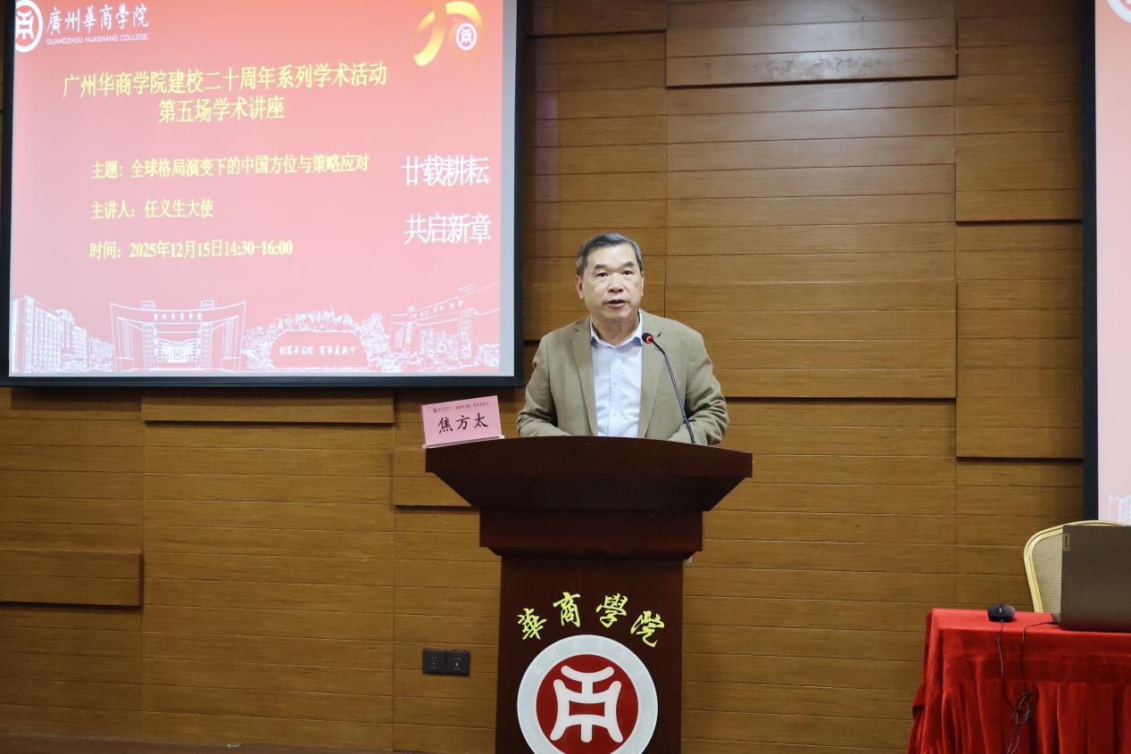 焦方太副校长在总结中强调,作为一所秉承“创百年名校、育华夏英才”办学理念的高校,我们始终将提升学生综合素质、拓展其全球视野,视为实现这一愿景的关键路径。具备全球胜任力与国际视野,已成为当代大学生成长发展的核心素养。对于身处粤港澳大湾区核心城市——广州的我校学子而言,深入理解国际形势与国家外交政策,更具现实紧迫性与特殊重要性。他强调,要以此次任义生大使的讲座为契机,进一步引导青年学子关注国际动态、涵养全球格局,提升参与全球治理的意识和能力,不断推动我校国际化人才培养工作走向深入、取得实效。