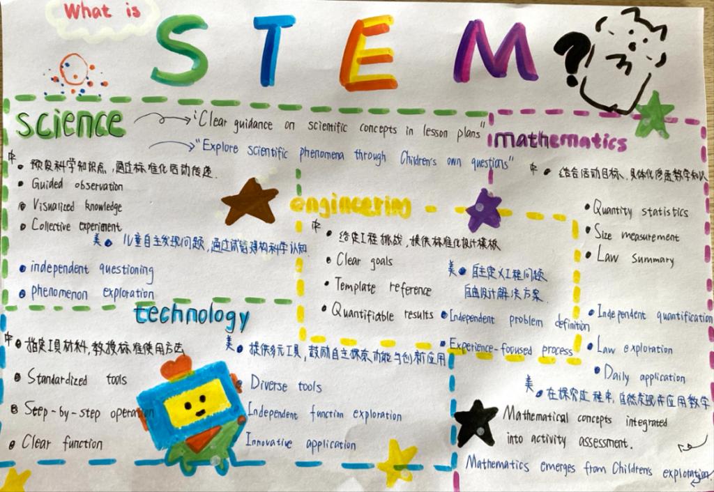 Finally, based on the reading experience of the two books, I have thought about how to promote the development of early childhood STEM education in the future. The most important point is that there is no one-size-fits-all solution, and we need to learn from each other’s strengths on the basis of respecting our own cultural roots. For China, we should inject flexibility into the standardized frameworks. On the premise of ensuring the feasibility of teaching, we can reserve time for children’s open exploration, and encourage teachers to adjust activity links according to children’s interests and actual situations. For example, in the "paper bridge load-bearing" activity, after demonstrating the basic folding methods, teachers can guide children to try more creative structures. For the United States, it is necessary to strengthen the support for under-resourced schools, provide them with sufficient materials and teacher training, and ensure that every child has the right to participate in inquiry-based learning. At the same time, teachers should appropriately provide targeted guidance when children encounter bottlenecks in exploration, so as to avoid aimless play.
