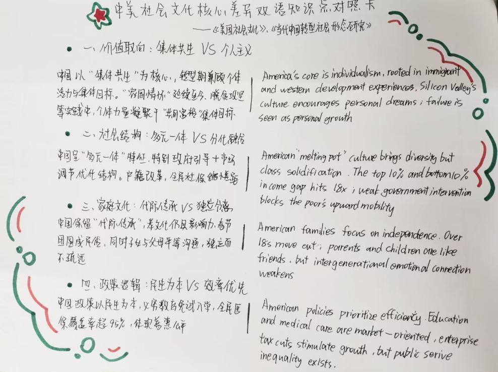 设计说明:以两本著作为依据,浓缩中美社会文化核心差异,中英对照呈现,助力跨文化知识高效梳理。