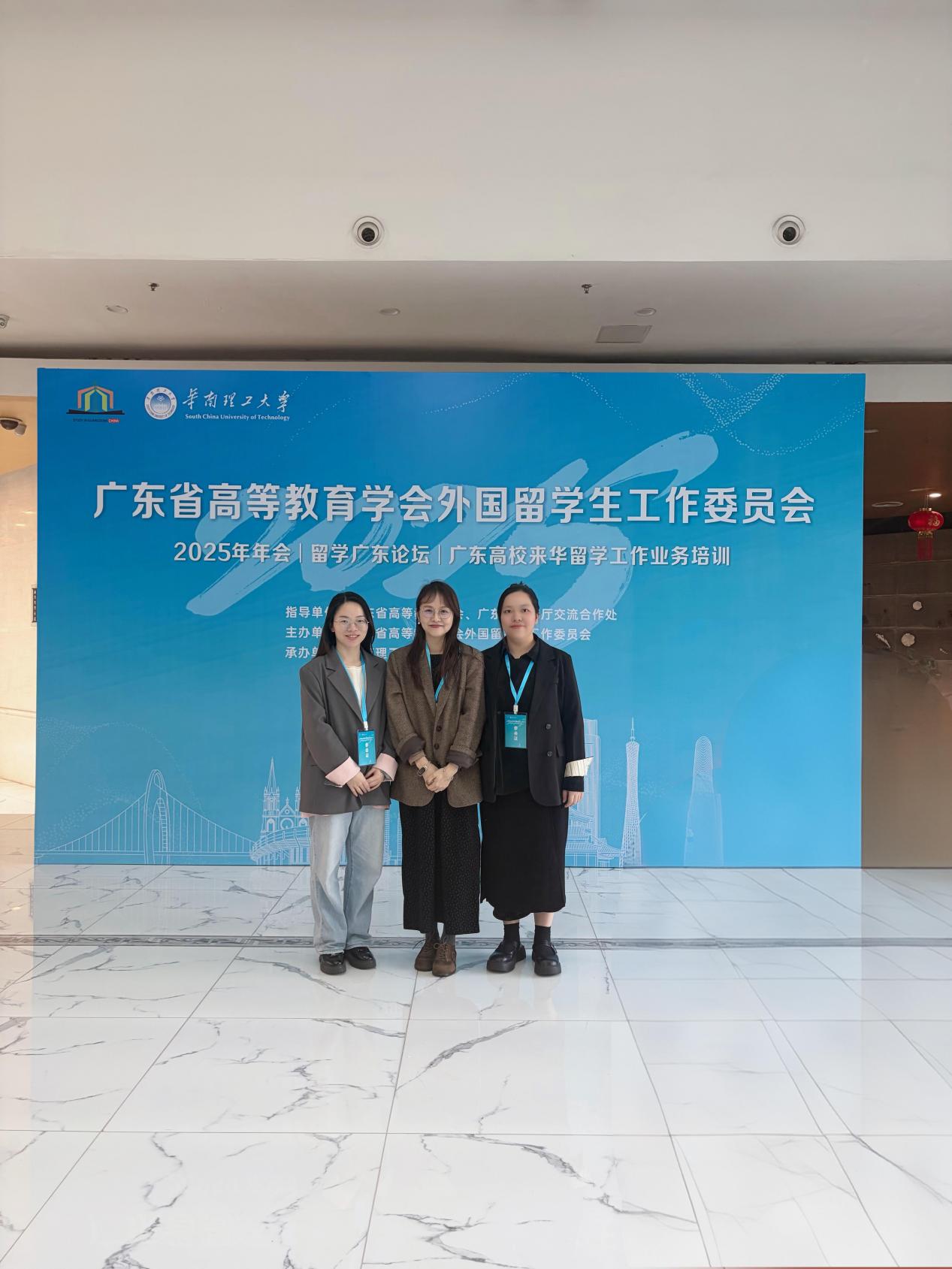 为准确把握来华留学教育最新政策方向,学习借鉴省内高校先进经验,进一步提升我校国际化教育管理与服务水平,2025年12月29日至30日,3044永利集团登录来华留学服务管理团队俞蓓、郝自秀及陈佳欣,赴华南理工大学参加了由广东省高等教育学会外国留学生工作委员会主办的“2025年年会暨‘留学广东’论坛、广东高校来华留学工作业务培训会”。同时,团队全程观摩了同期在华南理工大学广州国际校区举办的2025“留学中国·学在广东”工作成果展示活动。