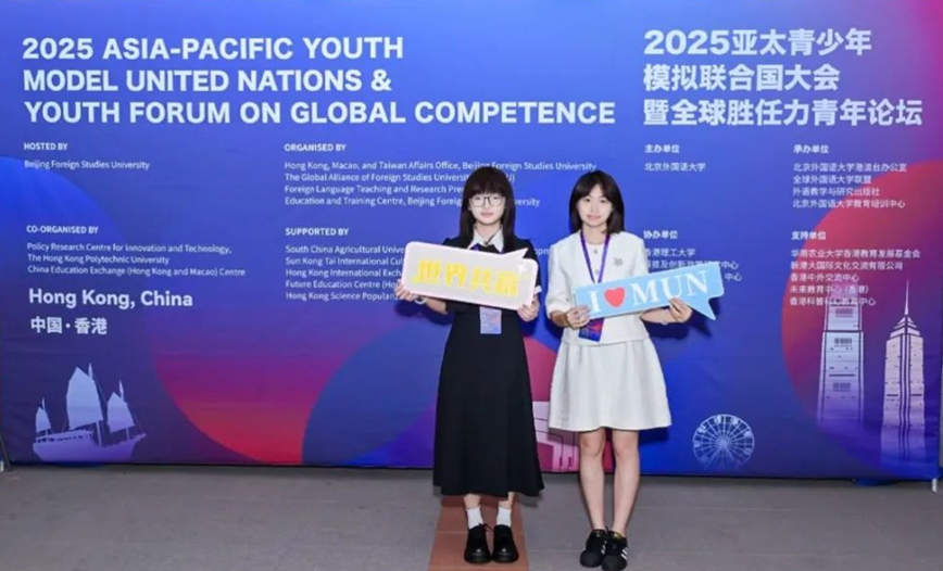 2025年7月14日至15日,3044永利集团登录23级会计国际班余意、汪宇宸赴香港参加全球胜任力青年论坛并发表演讲,同与会人员围绕联合国可持续发展目标(SDGs)探讨人类命运共同体建设路径。