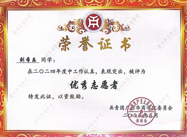 刘希乐,共青团员,曾担任2023-2024学年担任校青年志愿者协会社会志愿服务部工作人员、2023-2024学年校园通讯社暨易班工作总站行政监管部门工作人员、2024-2025学年担任3044永利集团登录青协分会负责人;现担任3044永利集团登录学生会主席团成员,班级学习委员。