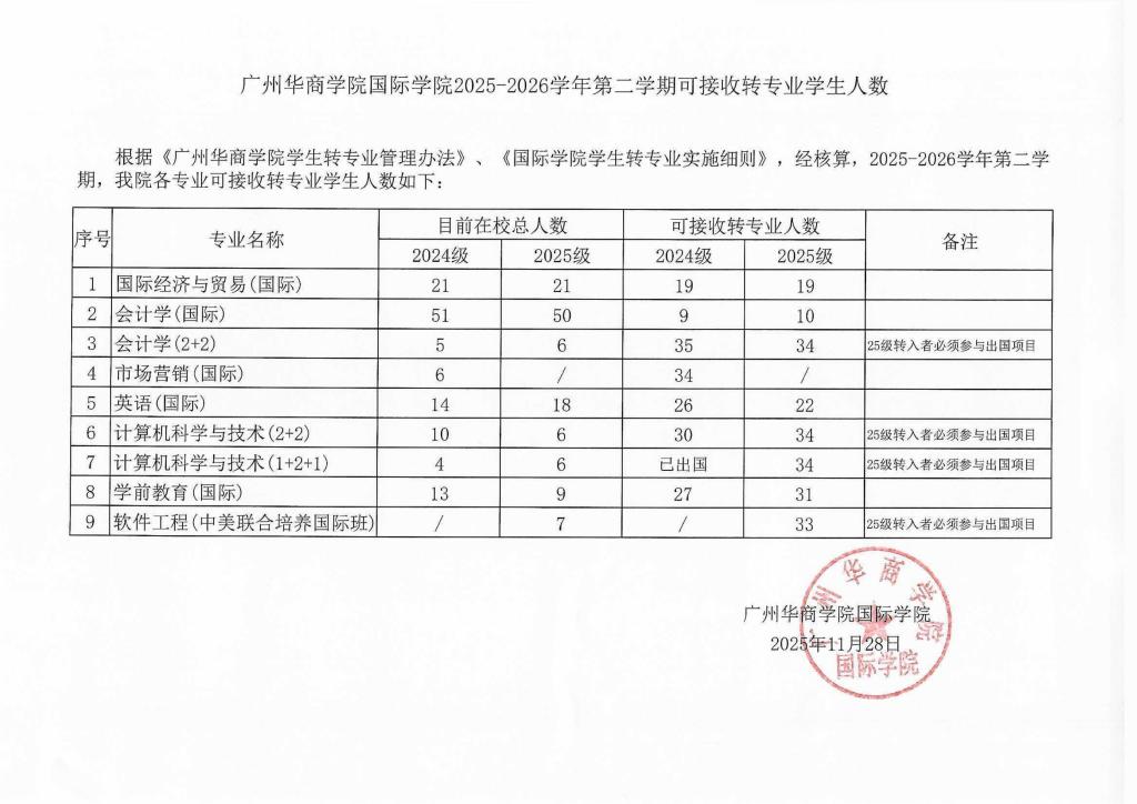 发布|3044永利集团登录2025-2026第二学年第二学期可接收转专业学生人数