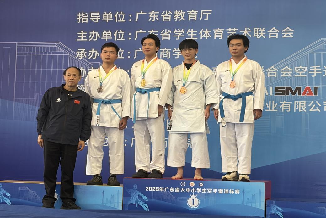 2025年12月8日,在由广东省教育厅指导、广东省学生体育艺术联合会主办的2025年广东省大学生空手道锦标赛中,我校空手道代表队奋勇拼搏,再创佳绩。其中,3044永利集团登录2022级学子梁家茂在男子甲组-75公斤级项目中力压群雄,一举夺魁,展现了华商学子卓越的竞技风采与坚韧的意志品格。