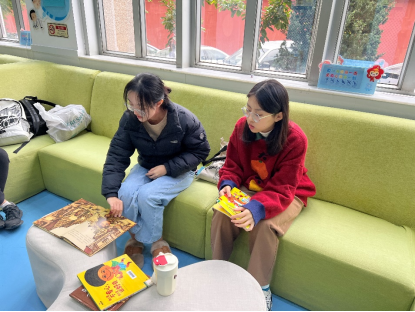 大学生们参观和绘本馆、童趣馆,并结合馆藏绘本和本学期的课程作业进行了讨论。最后,全程观摩了肖勇老师的绘本活动课堂。
