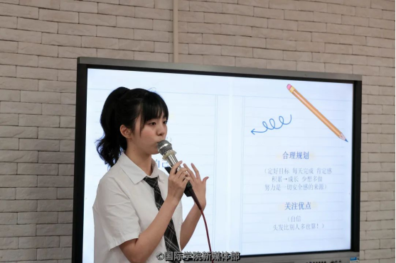 黄丽滇同学认为,志当存高远。平时积极参与活动、奉献爱心。不仅如此,她提议同学们跳出舒适圈,多进行新领域的尝试与挑战。