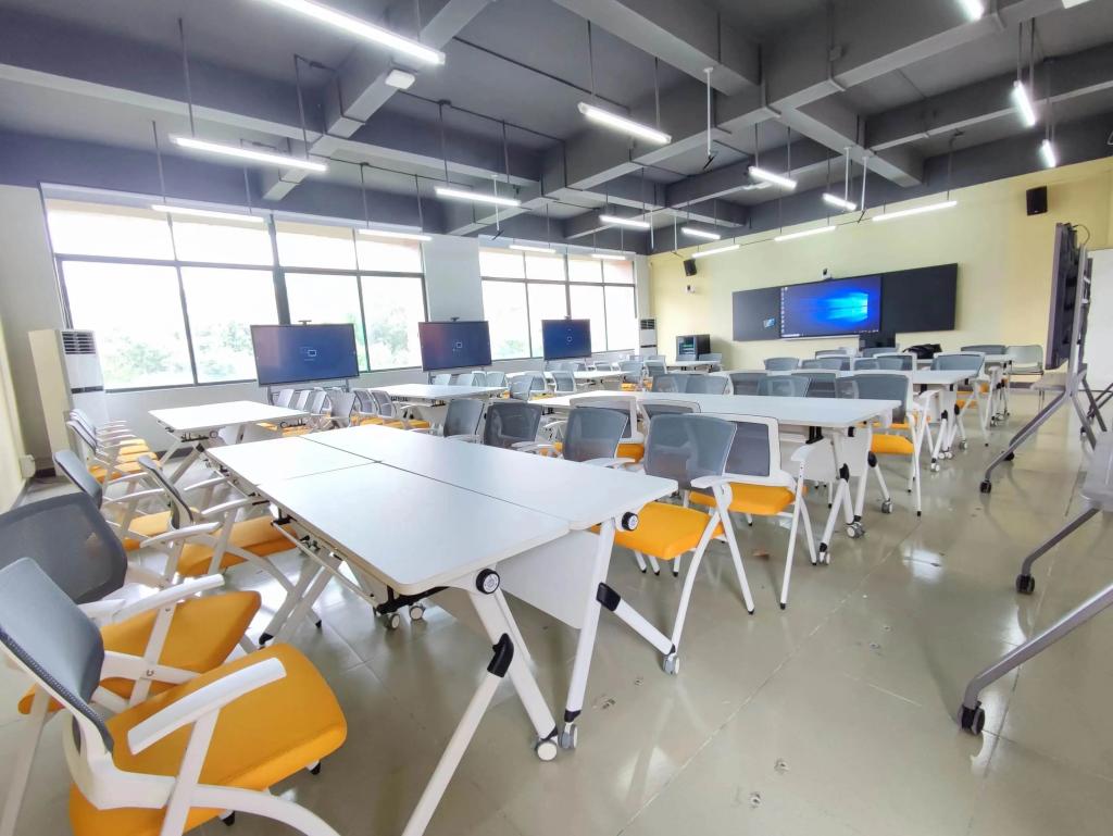 新学期,增城校区完成了31间实验室旧设备的更新、同声传译实验室、励志楼10间智慧教室的升级改造,以及90间教室电子班牌的投入使用,师生们在优美的校园环境中开启新征程。