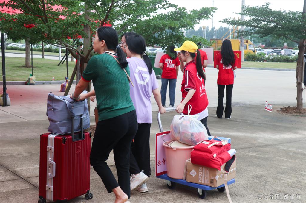 财务管理一班 温同学(志愿者):“我主要的工作是帮助同学们搬运行李,从校门口搬到宿舍楼楼下。因为去年我的行李也是师姐帮我搬的,所以今年也来帮忙,就是传承嘛!今天看到这么多新生,感觉到华商有了很多新鲜的血液,像看到了去年的我们一样。”