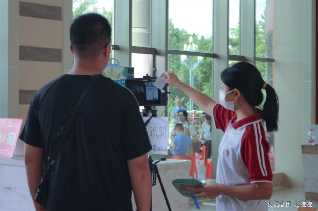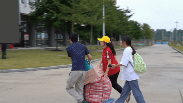 汉语言文学四班 庄同学(志愿者):“我们是后勤部的志愿者,今天早上我们7:40就到位迎接新生们了。我们主要的工作是在这里指引车辆停放,不要让车辆堵住道路。今天见到很多的新生,也建议新来的同学们可以多在学校走走。”