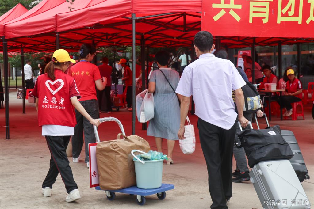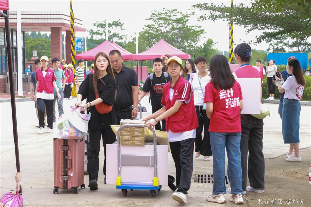 看!可爱的志愿者们已经准备好小推车迎接新生的“大礼包”啦!今年的迎新相比去年完善不少且运用了高科技,让我们一起走进华商看一下吧。