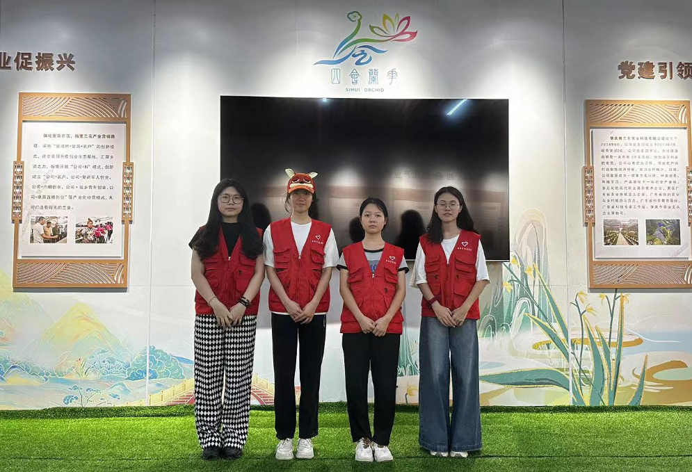 本次雅兰芳站路线讲解,师生志愿者们做好充分准备,精神饱满为到访人员提供外语翻译服务。“大湾区兰花看四会,四会兰花看石狗,石狗镇位于四会市中西部,地处北回归线以南,是四会市最早种植兰花的地方。”“四会市以兰为媒,将典雅的兰花元素融入到生活中去,让大家更好地认识兰花、感受兰花而打造的一系列文创产品,也是四会发展兰花产业全产业链的一种创新与尝试。”从雅兰芳大厅,到雅兰芳花场;从兰文化展示区,到兰花科普长廊,我校师生志愿者用心用情耐心讲解,为大家详细介绍四会兰花产业发展、石狗镇乡村振兴、经济发展的情况。我校学生志愿者们运用专业所学,用行动凸显语言的力量,绘声绘色地为大家讲述四会兰花、文化赋能乡村振兴的故事,搭建起中外交流的桥梁,帮助东盟青年、企业家深入了解中国、粤港澳大湾区以及肇庆的投资环境。