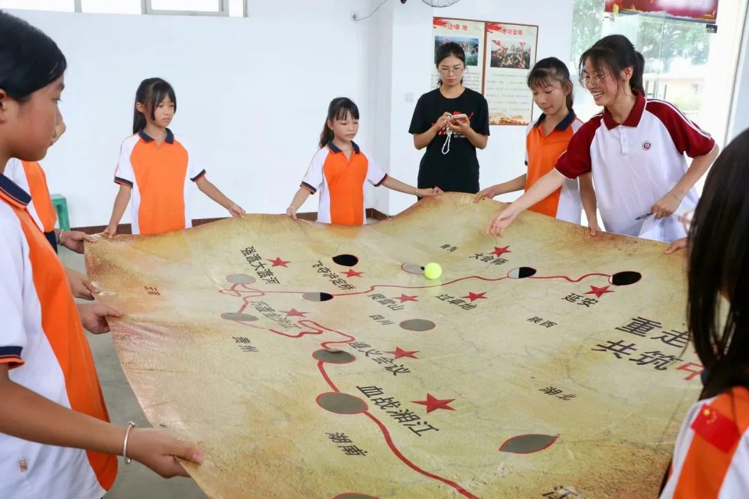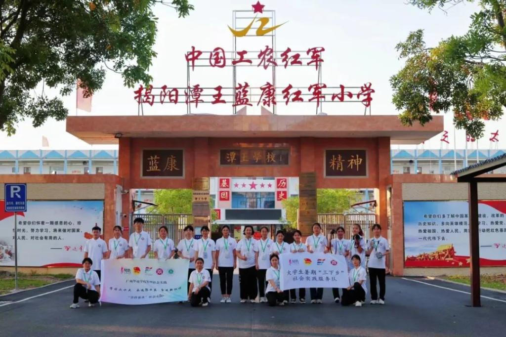 该实践项目以揭阳市揭东区潭王村蓝康精神为例,深入教学一线进行实践、调研,通过AGIL理论分析模型对潭王蓝康小学的红色文化教育进行系统性的研究,旨在深入探究乡村文化振兴视阈下地方红色基因融入中小学教育的不足之处,并结合研究结果和实践经验,提出地方红色基因融入中小学教育的提升路径和策略,将为乡村振兴战略和中小学教育的融合发展提供理论指导和实践支持以及为乡村文化振兴的成功实施提供重要的“智”力支持。项目团队社会实践团于2023年7月3日至7月16日在广东省揭阳市潭王村开展为期14天的社会实践活动。其以红色党建为引领,围绕揭阳市潭王村“蓝康精神”,通过“支教+墙绘”形式,依托专业优势,结合社会需求,发展服务特色,建立品牌方向,开展“追寻红色革命足迹,宣讲百年党史事迹,践行三全育人理念,绘制乡村振兴画卷”四步走的社会实践活动。