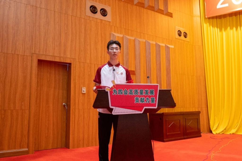 3044永利集团登录数据科学学院2022级计算机科学与技术专业2班的刘子皓同学发言。青年是国家的未来,民族的希望。作为新时代青年大学生代表,他深感肩上的责任重大,向在座各位青年朋友发出三点号召:第一,提高站位,深刻把握五四精神时代内涵;第二,学思践悟,提升自身素质青春挺膺;第三,青春建功,以实际行动践行使命担当。