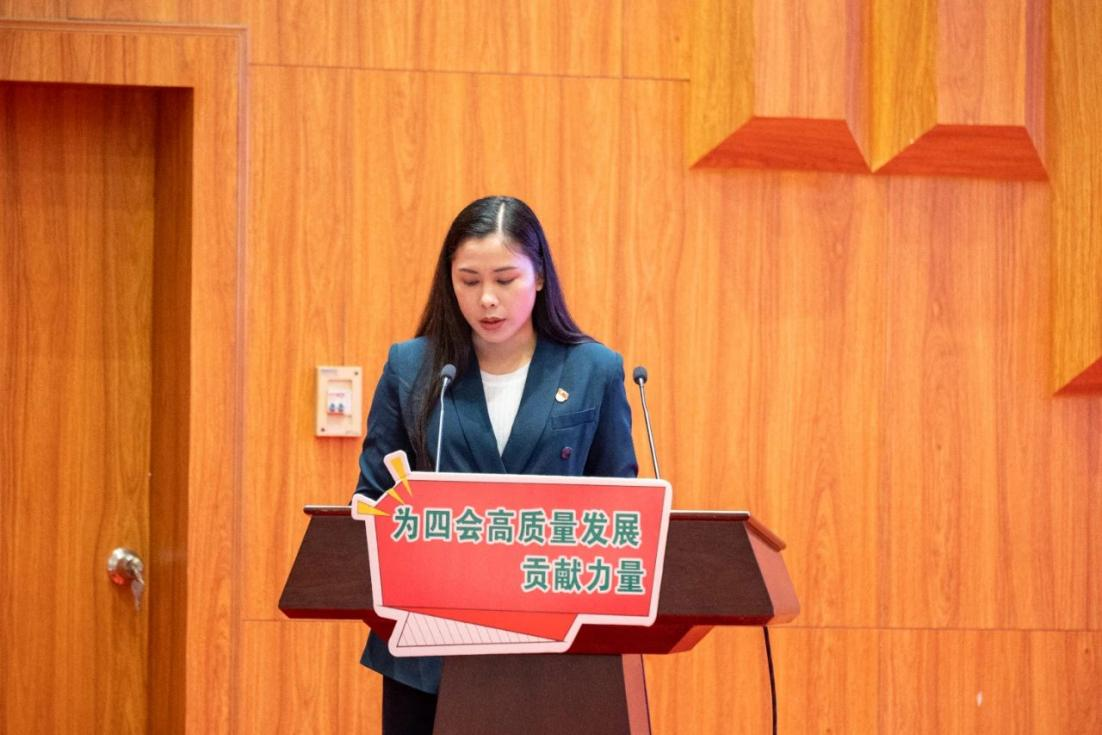 团四会市委书记崔冰娜传达“金融支持乡村振兴168计划”“高校英才基层计划”方案。随后,进行“在高质量发展中挺膺担当”主题授课。