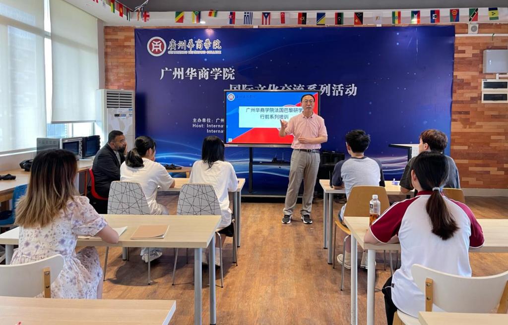 5月7日,我校在广州校区举办了优秀学生赴法国巴黎研学行前培训系列课程开班仪式。国际交流与合作处处长王文忠、外国语学院外教Tahir Shaikh、法语教师齐爱萍、国际交流与合作处吴文诗老师参加本次培训活动。