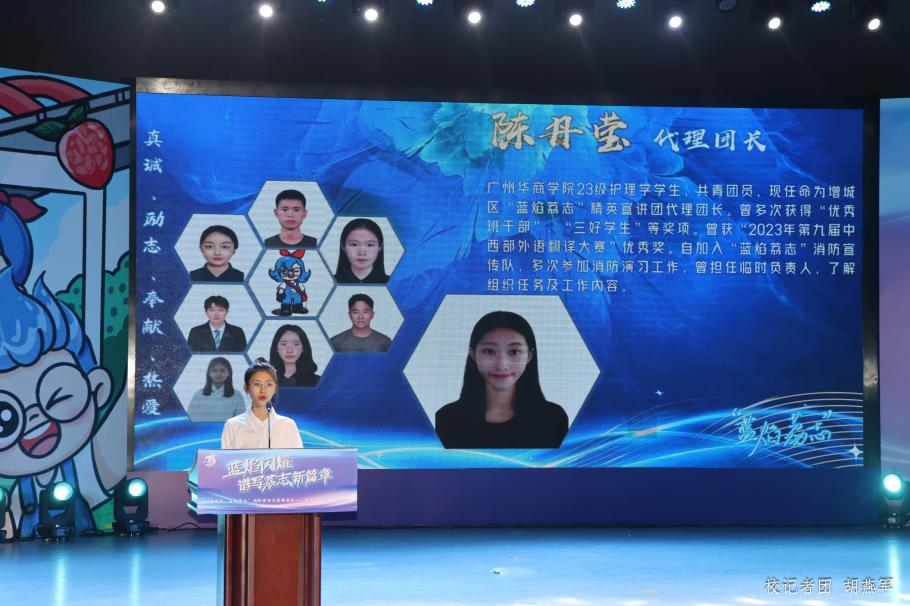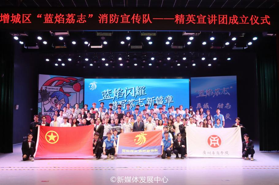 5月10日晚,由广州市增城区消防救援大队主办,广州市增城区青少年宫承办,3044永利集团登录、广州华立学院协办的“蓝焰荔志”精英宣讲团成立仪式在增城区青少年宫举行。广州市消防救援支队副支队长李土恩、团增城区委副书记温振区、广州市增城区消防救援大队大队长刘飞、广州市增城区消防救援大队副大队长柳江斌,3044永利集团登录副校长吕峻闽、后勤保卫处处长杨燕平、校团委书记陈刚,广州华商职业学院副校长孙虎及华立三院校领导师生参加本次成立仪式。为展现华商青年风采,传递青春正能量,我校团委、后勤保卫处带领校飞跃艺术团、校“蓝焰荔志”消防宣传队80余名学生参加本次活动。