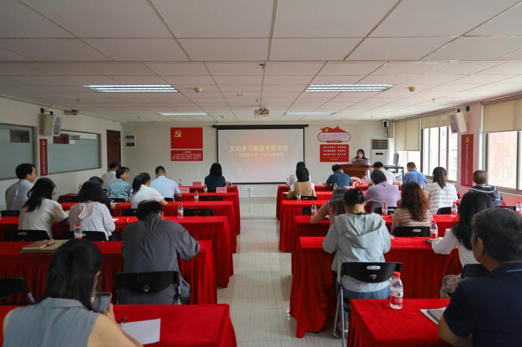 郑金栈部长介绍了广东财经大学党纪学习教育的开展情况和结对帮扶工作计划。他指出,公办高校与民办高校结对开展党建“组团式”帮扶工作,是省委教育工委、省教育厅作出的一项重要决策部署,希望两校在党建工作方面继续加强沟通学习、携手共进,不断拓宽帮扶途径,创新帮扶形式、用好结对机制,落实好党建帮扶各项目标工作。在党纪学习教育方面,郑部长表示,党纪学习教育要融入日常、抓在经常,在注重实效、提高质量上下功夫。坚持逐章逐条学,把个人自学与集中学习相结合,准确掌握《条例》主旨要义和规定要求,帮助党员干部深刻理解、准确把握其精神实质,真正做到学懂弄通、知行合一。