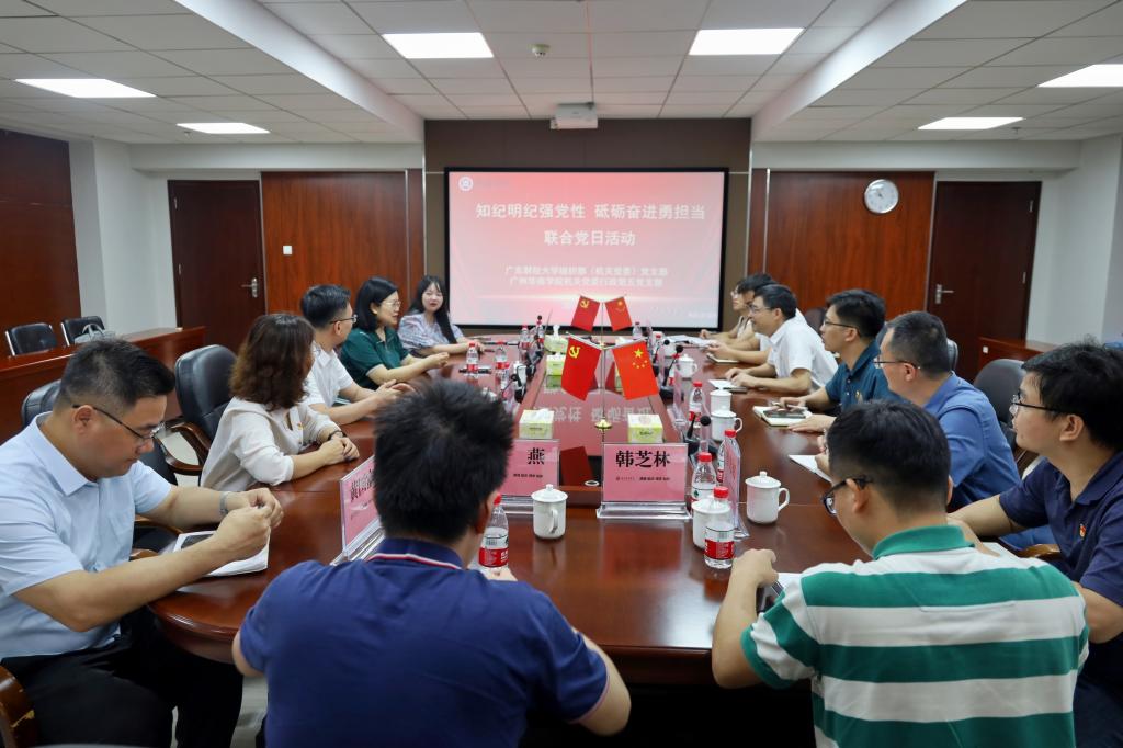 5月11日上午,广东财经大学组织部(机关党委)党支部联合3044永利集团登录机关党委行政第五党支部组织开展“知纪明纪强党性 砥砺奋进勇担当”联合党日活动暨党纪学习教育专题学习活动。广东财经大学党委组织部部长郑金栈一行到访我校开展本次党日活动。3044永利集团登录党委书记陈玉欢、帮扶小组成员、学校各基层党组织书记、组织员以及行政第五党支部全体党员参加活动。