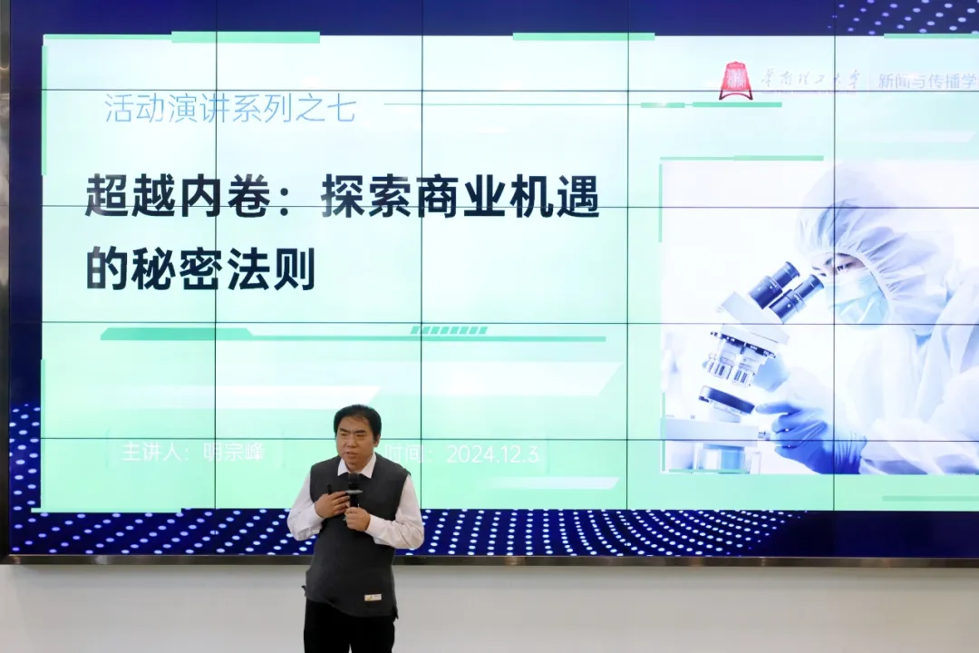 讲座伊始,明宗峰老师以其丰富的创业经历为切入点,详细讲述了在创业过程中经历的机遇与挑战。他阐述了“内卷”现象的起源以及具体表现形式,并对当前时代背景下内卷竞争所产生的影响进行分析。