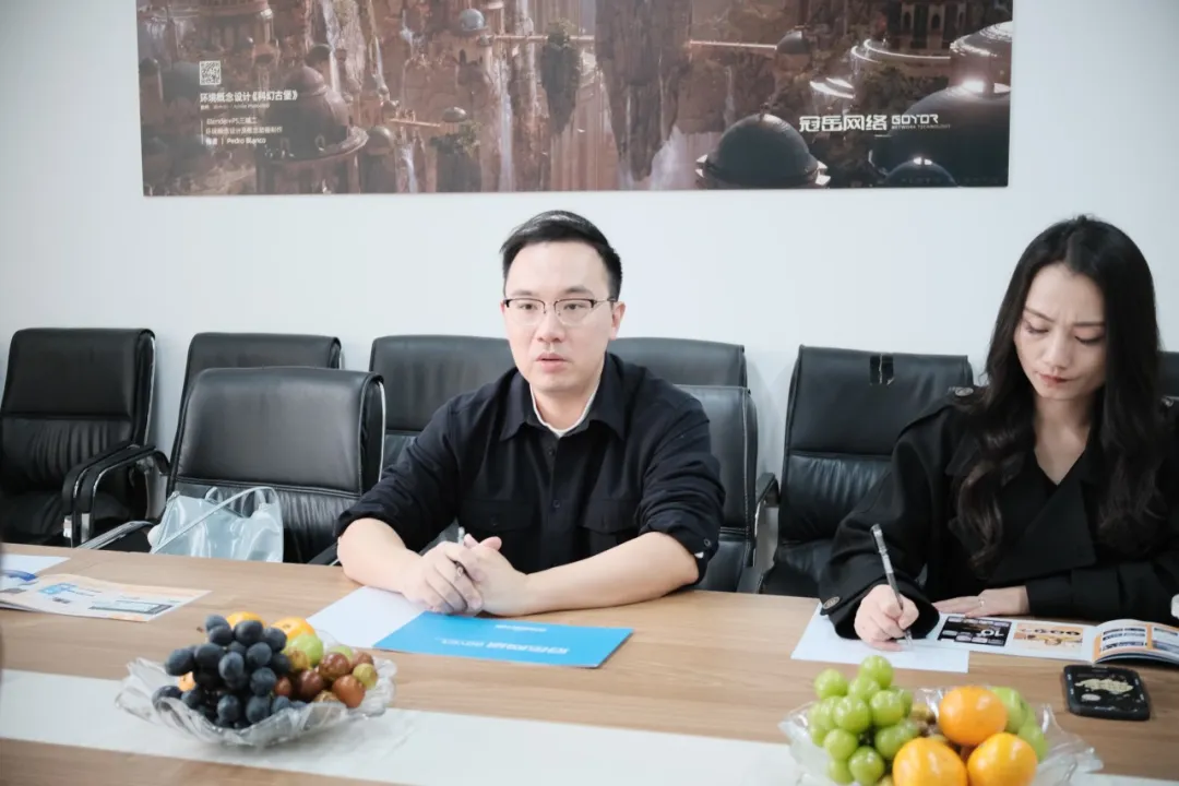 座谈会上,广州冠岳网络科技有限公司CEO谢啟雄详细介绍了公司发展概况、核心业务、用人需求等。他表示,希望与学校达成紧密合作,通过学生研学、实习实践、主题讲座等方式建立长效机制,利用公司平台优势帮助学校优化教育资源和教学方法,同时为学生提供更多实践和学习机会。