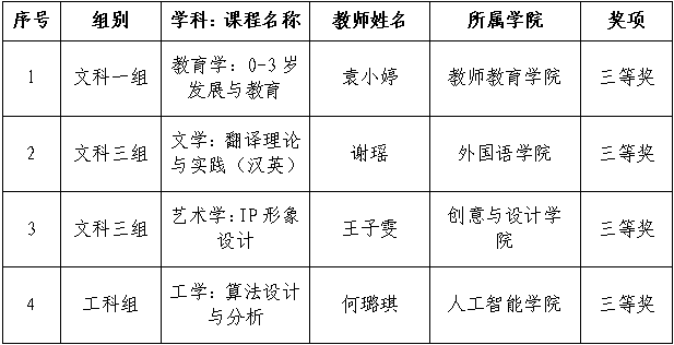 在广东省第七届高校(本科)青年教师教学大赛中,我校袁小婷、谢瑶、王子雯、何璐琪四位教师凭借扎实的教学功底、新颖的教学设计和生动的课堂展示,在众多参赛者中脱颖而出,均获得三等奖。