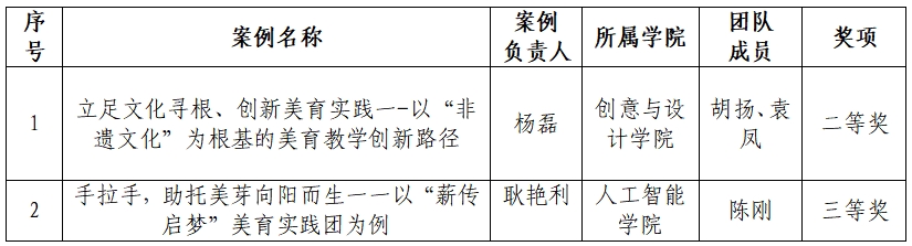 在广东省2024年高校美育改革创新优秀案例评选中,我校共报送4个案例,2个案例分别获二等奖和三等奖,体现了我校在美育改革创新方面的积极探索和实践成果。