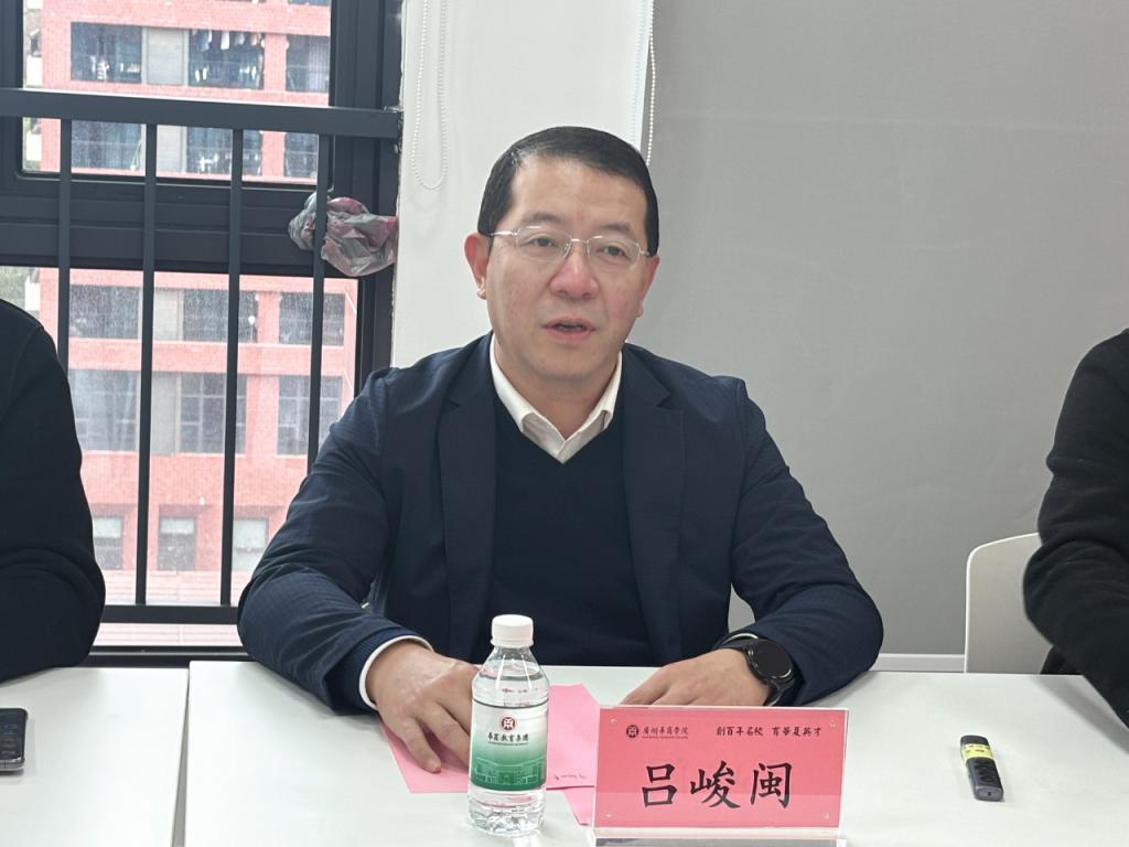 吕峻闽副校长作总结讲话。他表示,此次座谈会为学校与大事件科技集团搭建了良好的沟通桥梁,双方在产教融合、人才培养等方面具有广阔的合作空间。他强调,学校将继续秉持开放合作的理念,推动校企深度合作,共同探索产教融合新模式,为社会培养更多适应市场需求的高素质创新型人才。