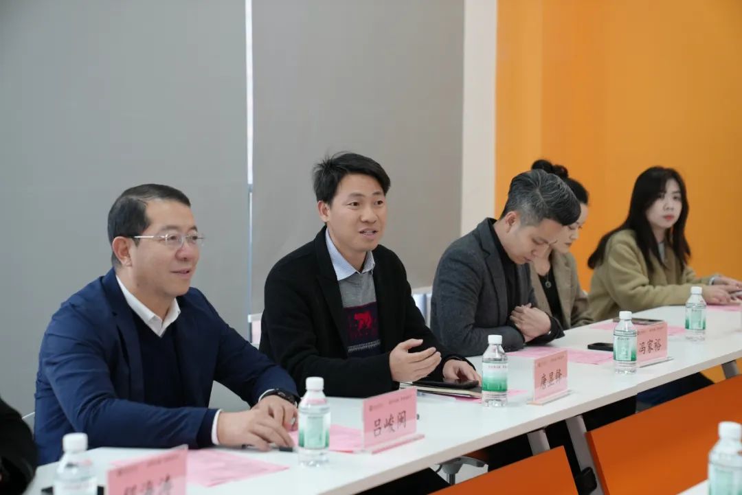 数字经贸学院院长助理石立和传播与传媒学院院长助理兼动漫游戏产业学院副院长程海涛分别介绍各自学院的基本情况、特色专业以及产教融合发展情况。石立院助提到,数字经贸学院在跨境电商、数字经济等领域具有深厚的教学基础和实践经验,已初步构建了与产业紧密结合的课程体系。程海涛院助则强调,传播与传媒学院与动漫游戏产业学院在新媒体传播、动漫游戏等创意领域形成了鲜明的专业特色,并在产教融合方面取得了一定成果。他们均表示,期待与大事件科技集团在相关领域展开深度合作,进一步提升学校的学科建设水平与人才培养能力。