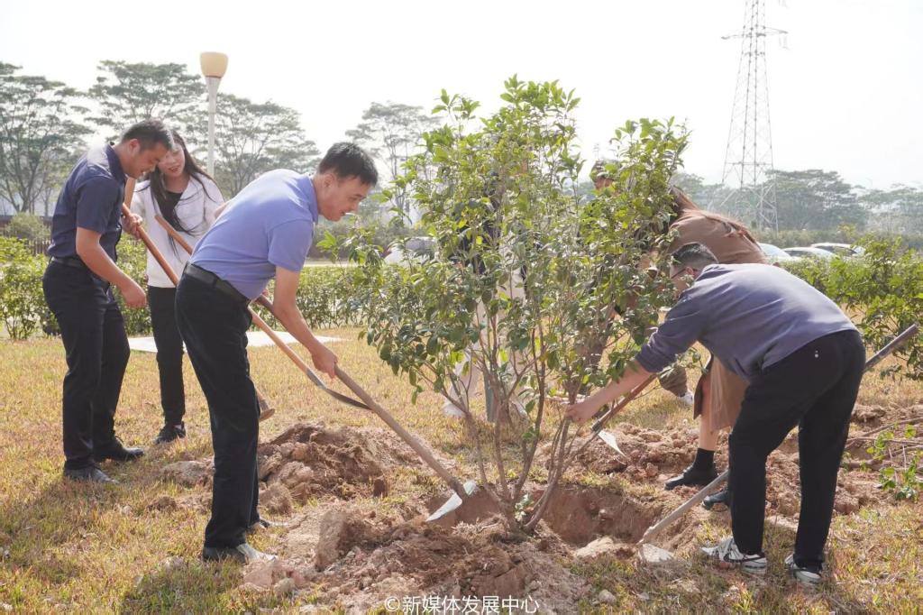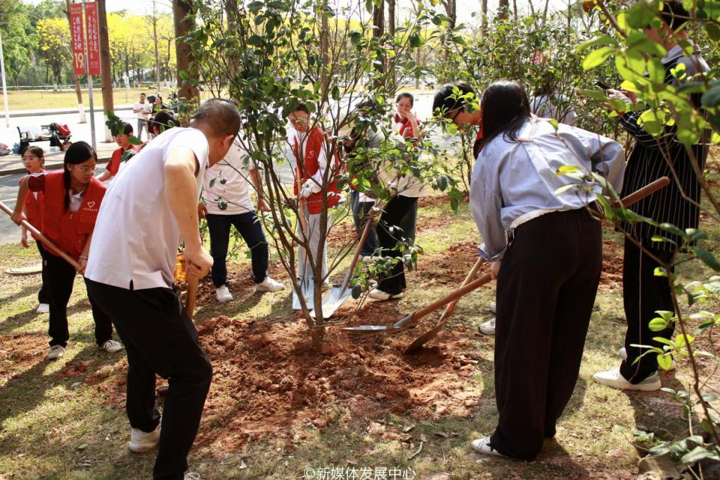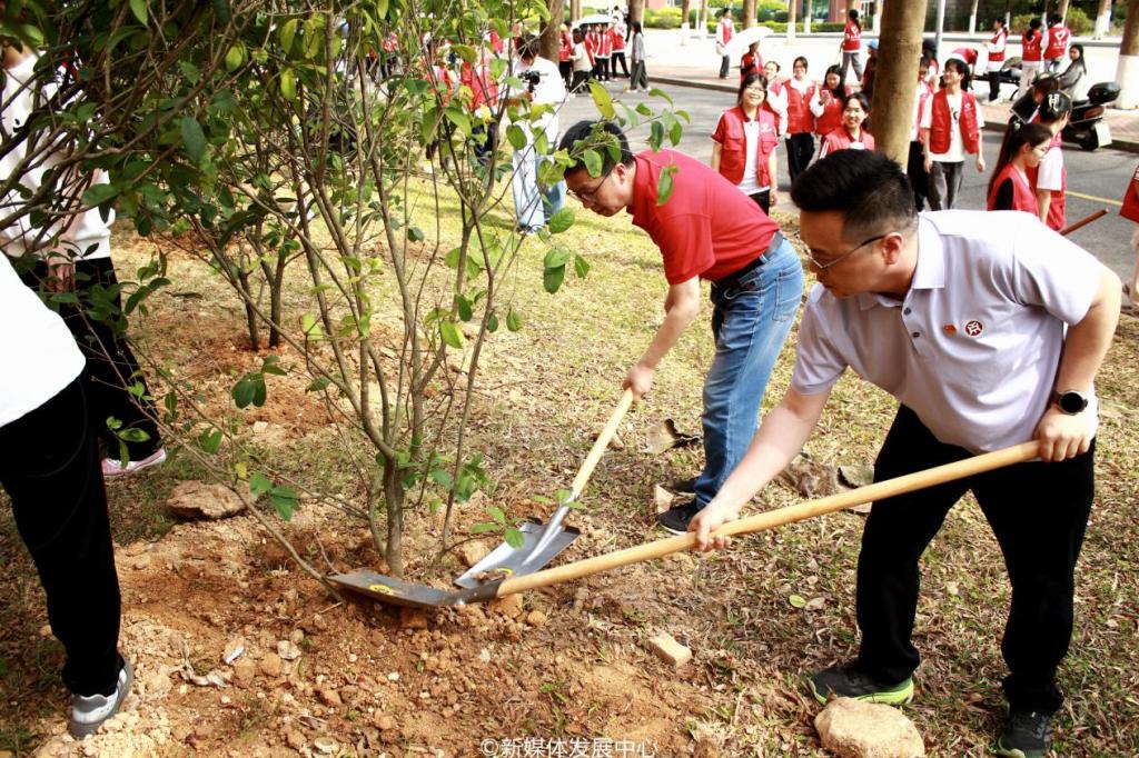 为引领华商青年在实践中践行绿色发展理念,助力绿美广东生态建设,3月11日-12日,3044永利集团登录2025年“绿美广东 青年先行”植树护绿活动在双校区开展。学校党委书记陈玉欢,校长助理黄伟新、张军,党委委员、党委办公室主任吕书勉,肇庆校区党委书记苏宁,3044永利集团登录院长回雁雁,创意与设计学院院长杨磊,管理学院副院长袁仕海,体育学院党总支副书记莫军,肇庆校区后勤保卫办公室主任徐强,党群部门负责人、校院两级团学骨干、教师代表及学生志愿者近400人参加本次活动。