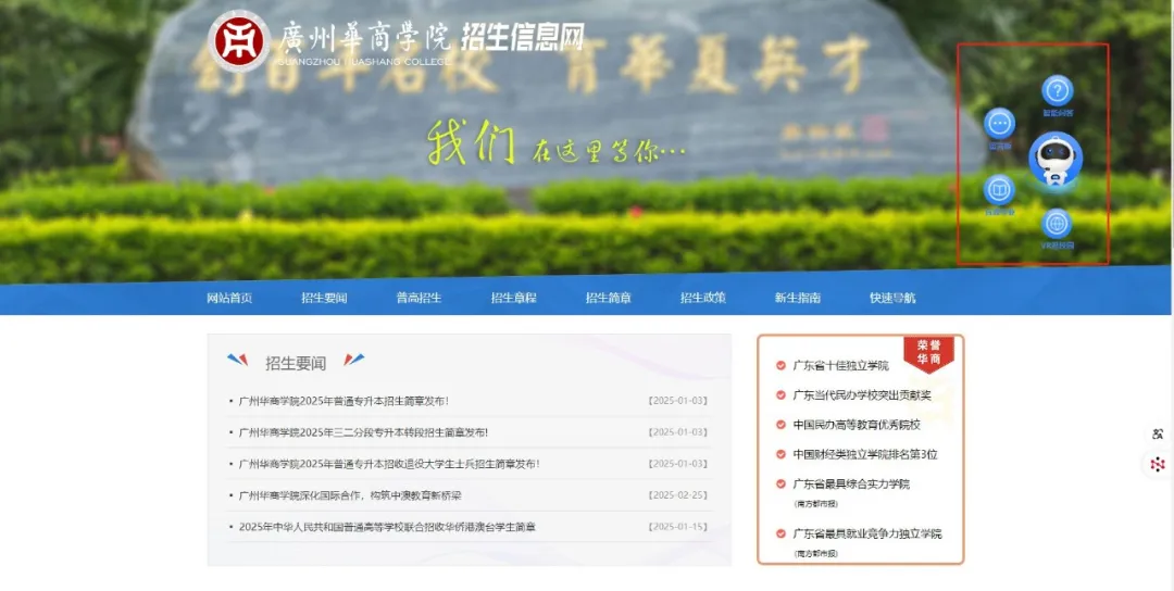 方式二:3044永利集团登录招生信息网登录3044永利集团登录招生信息网(网址:https://zs.gdhsc.edu.cn/),点击右侧“智能机器人小招”,在登录界面完善基础信息后即可在线咨询或留言。