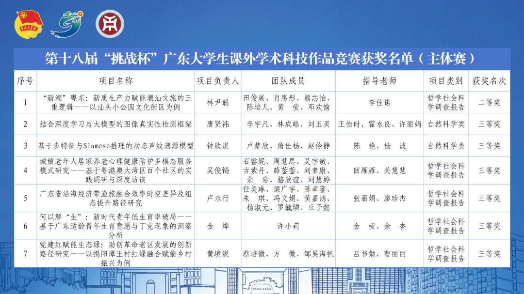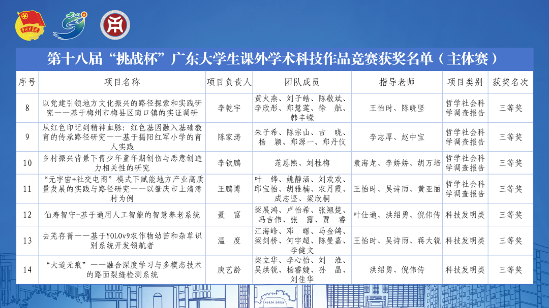 经过激烈角逐,全省共评选特等奖178项、一等奖272项、二等奖451项,覆盖自然科学、社科调研、科技发明三大领域。我校共有17支队伍获奖,其中主体赛1支队伍获二等奖,13支队伍获三等奖,专项赛3支队伍获三等奖。我校参赛团队以创新方案服务地方需求,展现了青年扎根大地、敢闯敢创的担当。赛事不仅为城乡发展留下“青春印记”,更以“科技+实践”的双向奔赴,书写了“强国一代”的使命答卷。