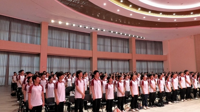 入团仪式在庄严的国歌声中拉开序幕。全体师生庄严肃立,高唱国歌。