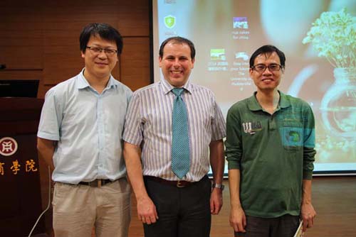 2015年3月19日晚,英国哈德斯菲尔德大学(简称“哈大”)专题讲座在图书馆报告厅顺利举行。主讲教师是哈大会计与金融高级讲师Wayne Fiddler、哈大华南区合作关系主管Olivia Zhao;经济系十多位老师和两百多名学生参加了本次讲座。