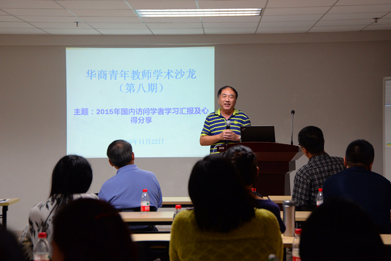 11月22日下午,以“2015年国内访问学者学习汇报及心得分享”为主题的第八期青年教师学术沙龙活动在行政楼502举办。学院执行董事廖智威先生、学院支戈壁副院长、学院张捷副院长、相关职能部门负责人、学院千百十培养对象、国内访问学者及各教学单位教师代表共50余人参加了此次活动。此次活动由人事处副处长彭强主持。