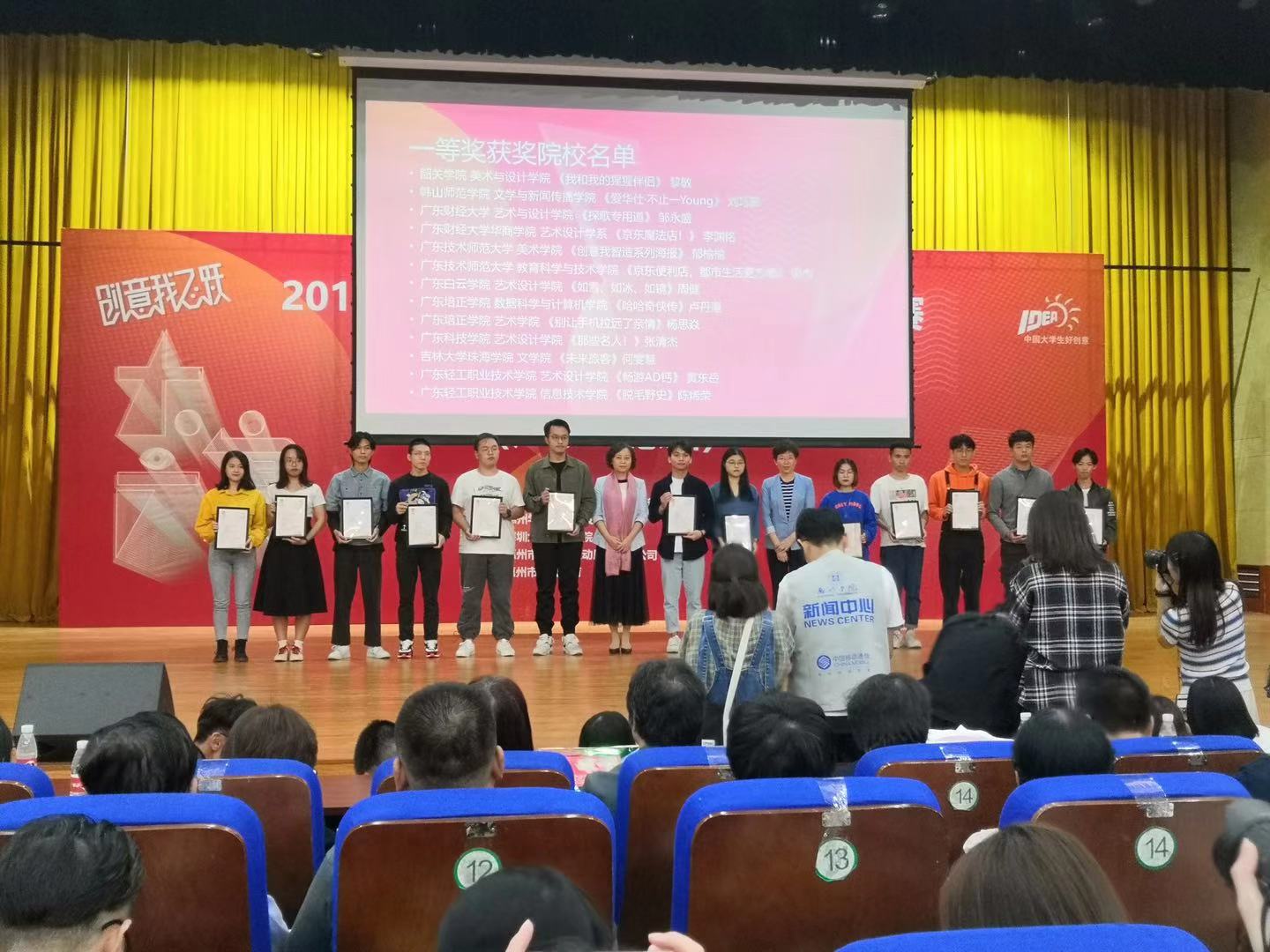 本次大广赛,文学院院2016、2017、2018级视觉传达设计、产品设计、动画、广告学等专业在激烈的竞赛中一共斩获省级60个奖项,其中一等奖10项,二等奖22项,三等奖28项。其中获得一等奖的同学有叶沃明、李岱蔚、赖岚滨、谢银月、魏琼、马相乐、李渊铭、叶卓颖、魏国安、庄美丹、吕海美、林佳东、梁力、邱振楠、梁恩瑜等同学,另外我院李明、湛素丹、富缨淇、陆春连、李红妮、黄功翔、袁凤、董业子等8位老师在本届比赛中获得优秀指导老师称号,以及广东财经大学华商学院荣获“优秀组织奖”称号。