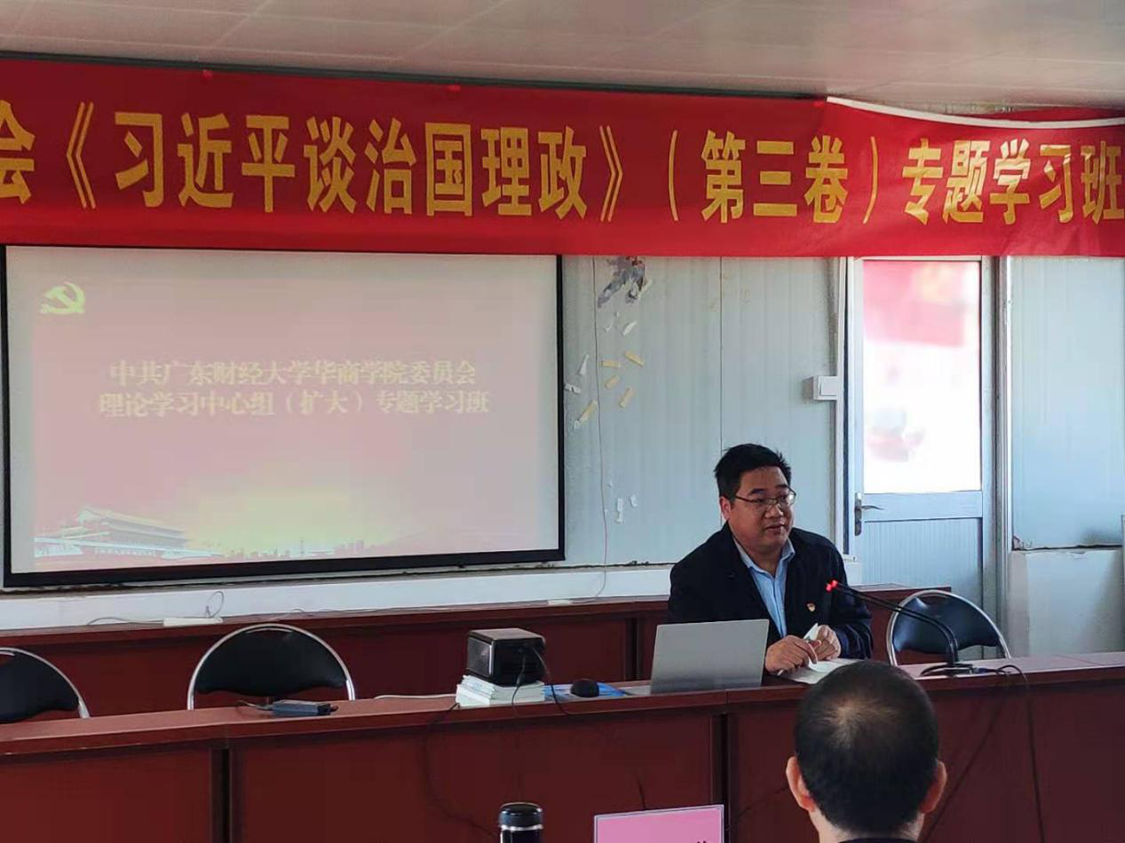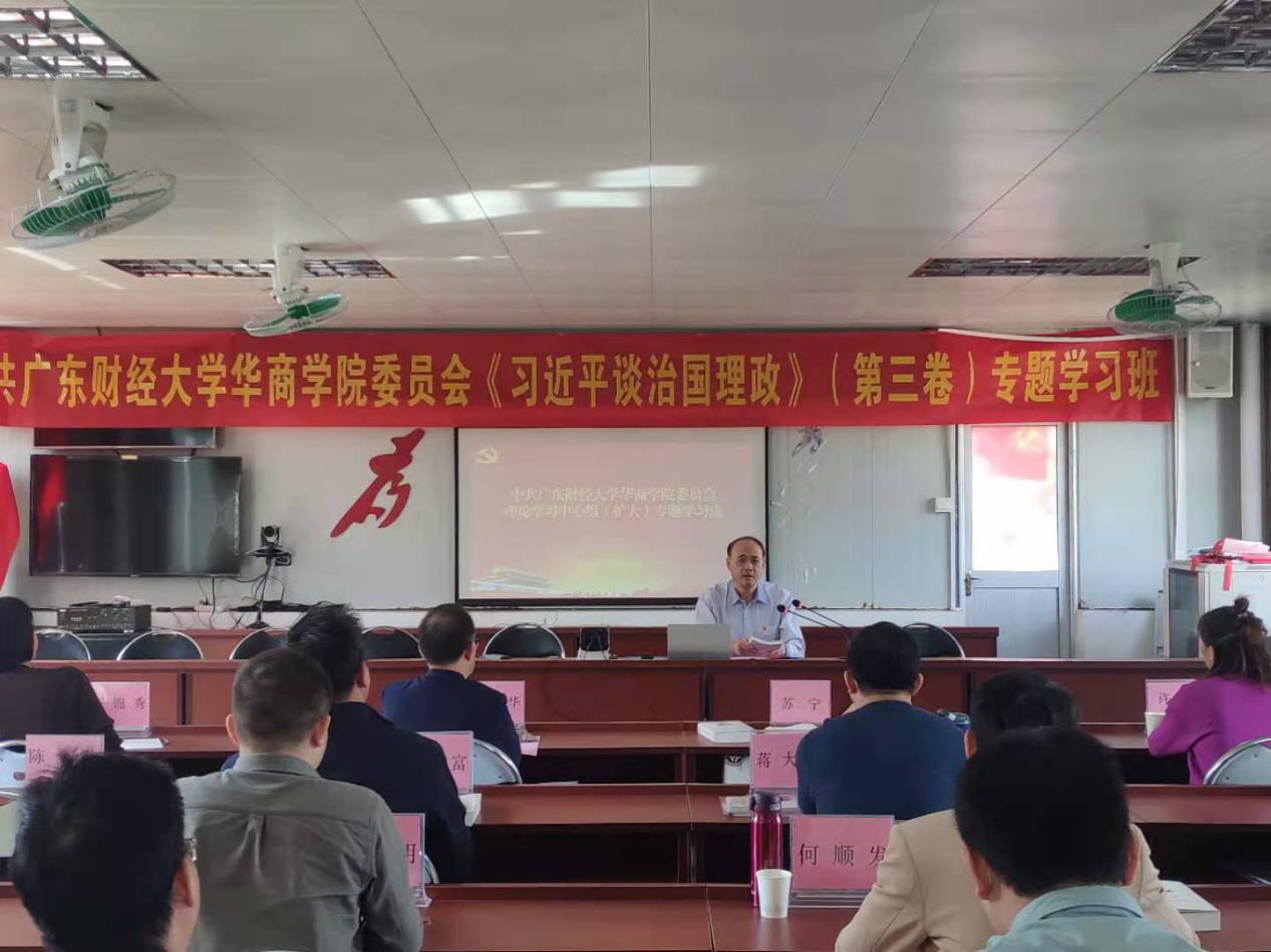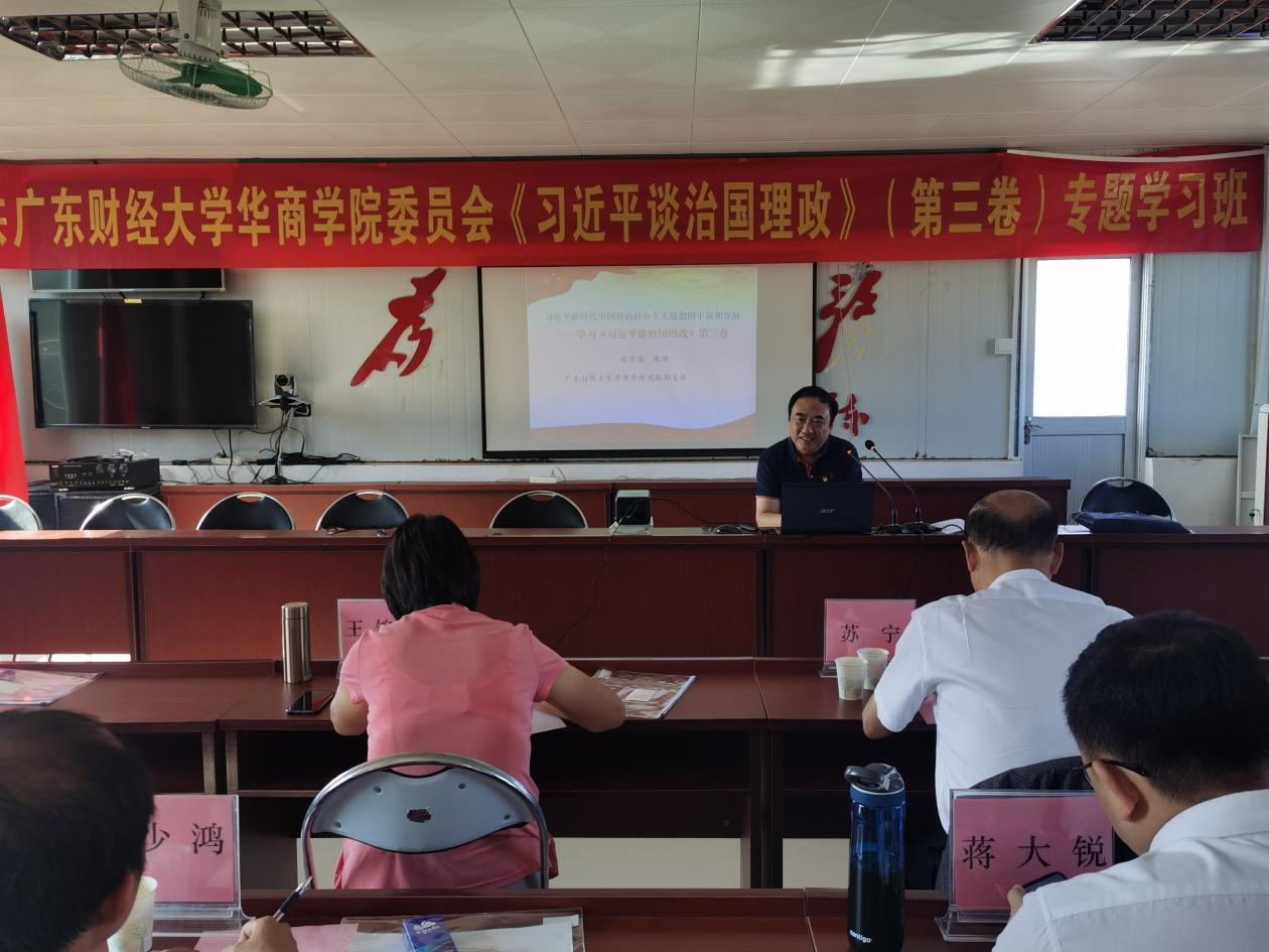 专题学习班还邀请了学校思政部主任张荣国教授,和广东财经大学马克思主义学院杜奋根教授作专题讲座。张荣国教授从基本情况、主要内容、重要特点和学习方法四个方面,详细解读《习近平谈治理理政》第三卷。杜奋根教授则重点阐述了第三卷与第一卷、第二卷的内在逻辑,并深入解读了第三卷第一专题“谱写新时代中国特色社会主义新篇章”的基本内容。