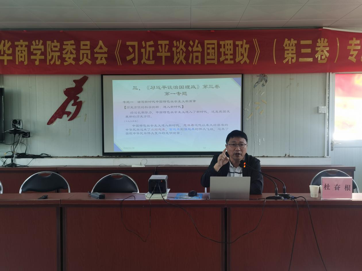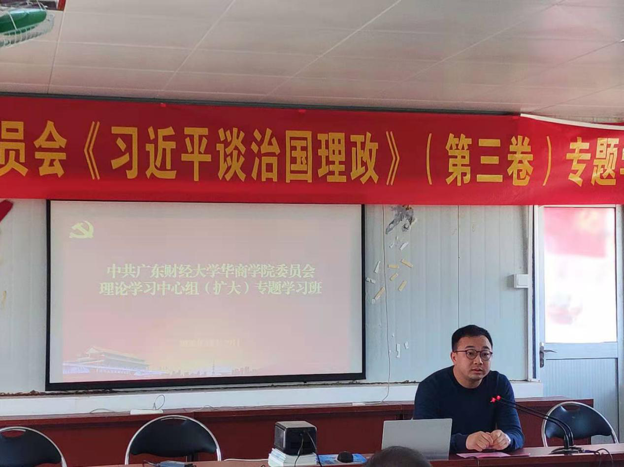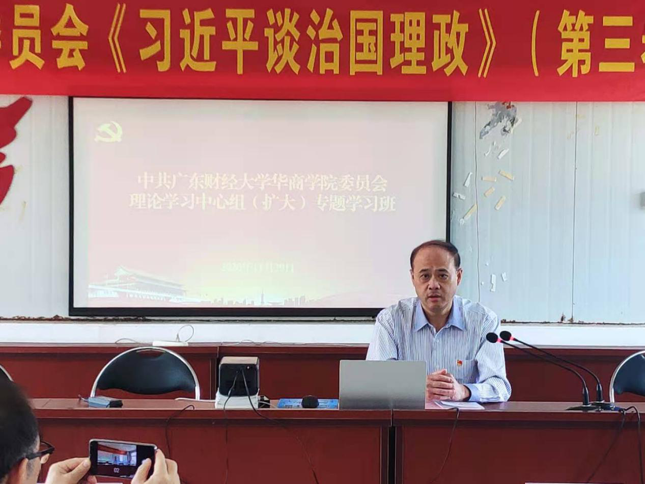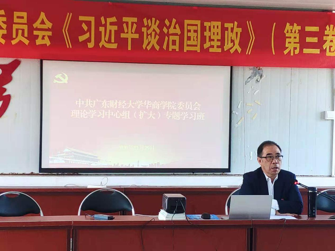 专题学习班还邀请了学校思政部主任张荣国教授,和广东财经大学马克思主义学院杜奋根教授作专题讲座。张荣国教授从基本情况、主要内容、重要特点和学习方法四个方面,详细解读《习近平谈治理理政》第三卷。杜奋根教授则重点阐述了第三卷与第一卷、第二卷的内在逻辑,并深入解读了第三卷第一专题“谱写新时代中国特色社会主义新篇章”的基本内容。