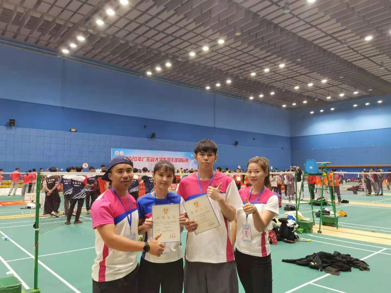 历经四天的激烈角逐 ,2020年广东省大学生羽毛球锦标赛于12月1日下午在东莞落下帷幕。本次比赛由广东省教育厅主办,广东省学生体育艺术联合会执行,广东世纪城羽毛球俱乐部承办。我校羽毛球队由体育教学部派出的教练员吴志侠、文陵桃两位老师带队,最终获得了甲A组混双第三名(蔡锦涛/杨云婷)、女子单打第七名(殷婉滢)以及团体二等奖的好成绩。